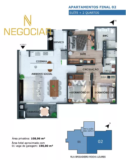- Apartamentos com sacada com churrasqueira;